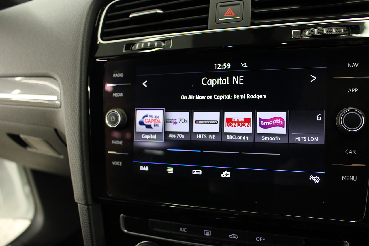The interior specification consists of sports seats with grey alcantara, satellite navigation, DAB radio, Bluetooth telephone connectivity, front and rear parking sensors, adaptive cruise control, electric and heated door mirrors, 12v power socket, steering wheel mounted controls, tinted windows and ISOFIX anchorage points. With an excellent drive, roomy interior and a five-star Euro NCAP crash-test rating, the Volkswagen Golf is one of the best hatchbacks and small estates around. Its improved in every area over the car it replaced and it can carry four adults in comfort, is enjoyable and comfortable on the road and has most of the equipment you'll ever need.