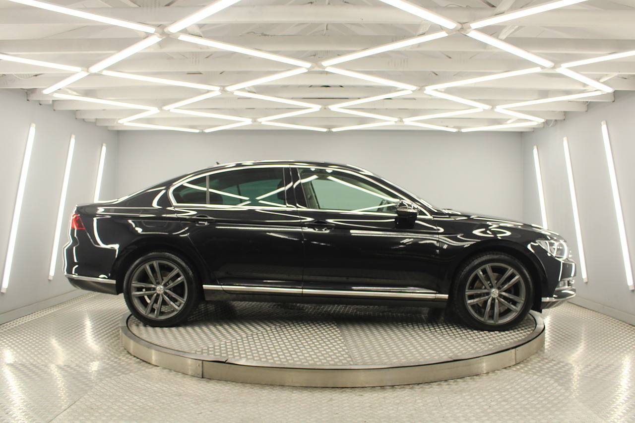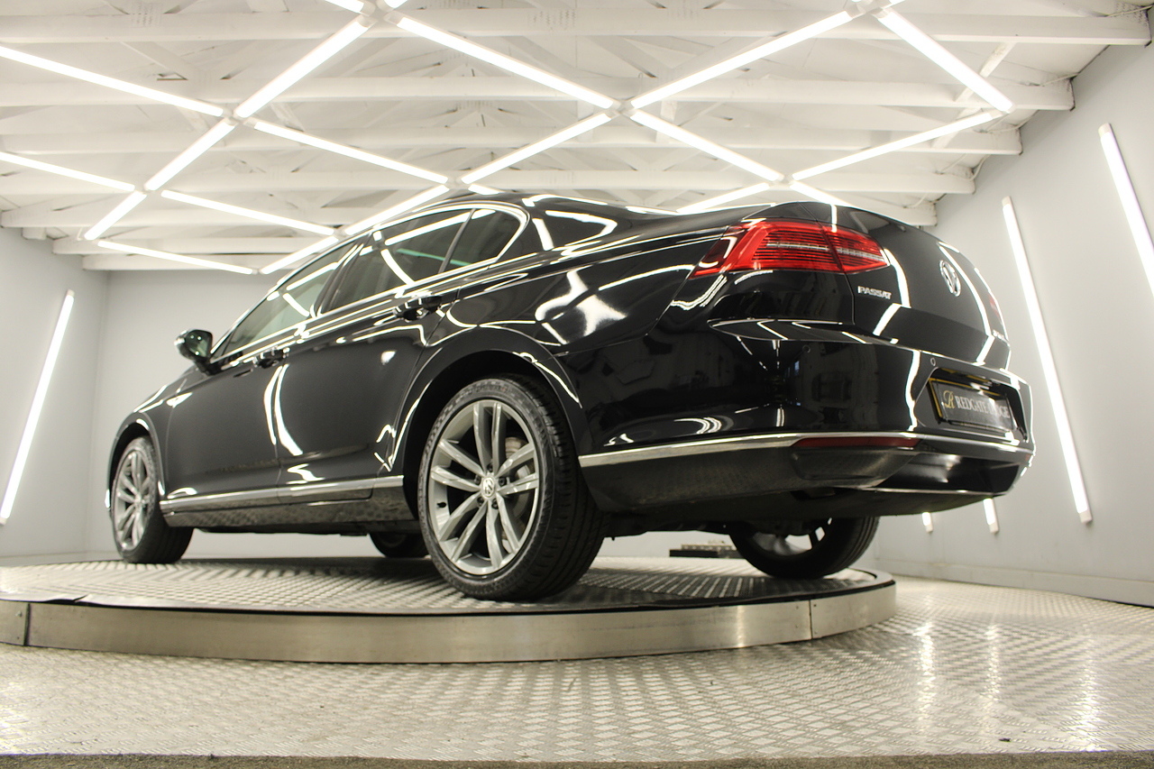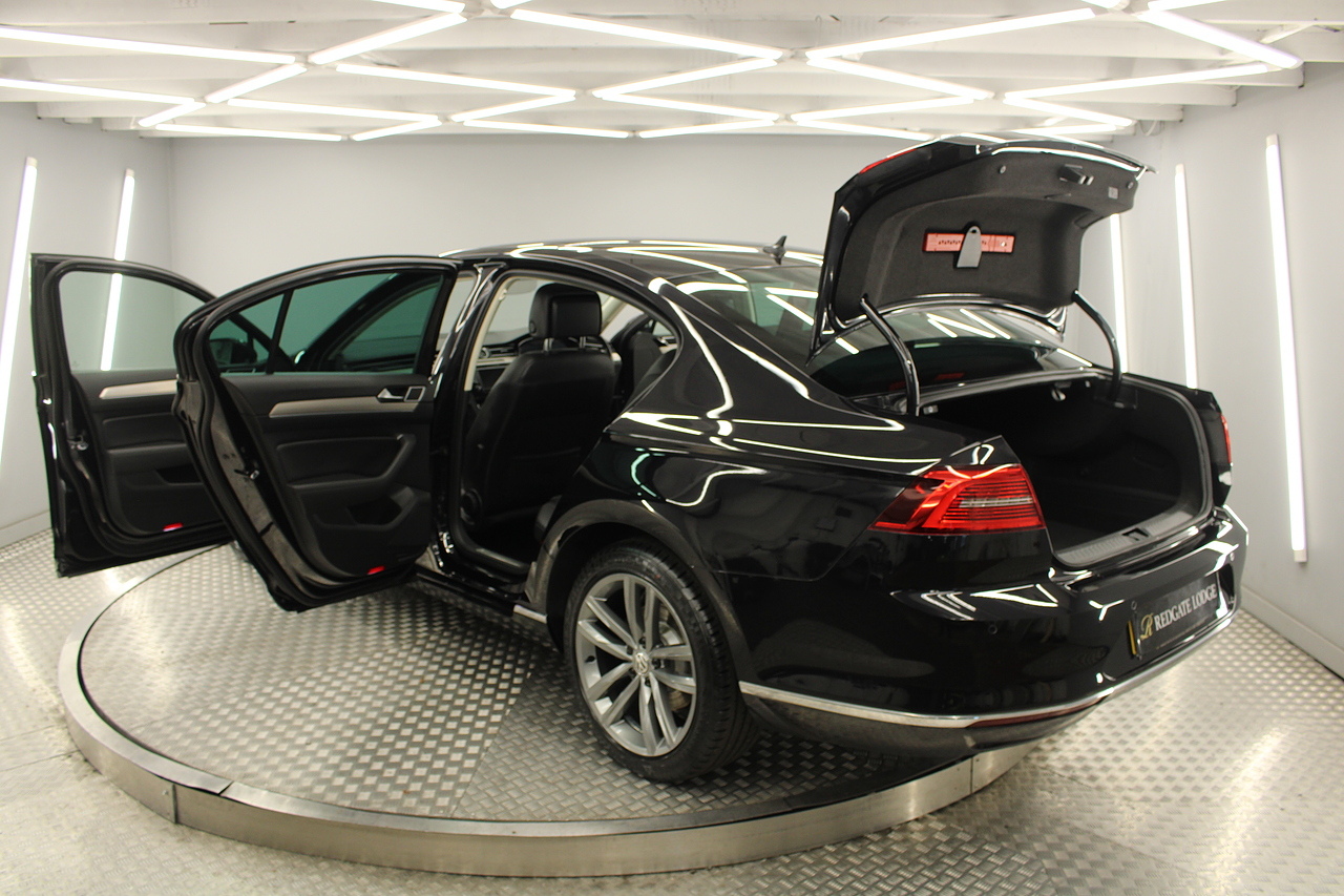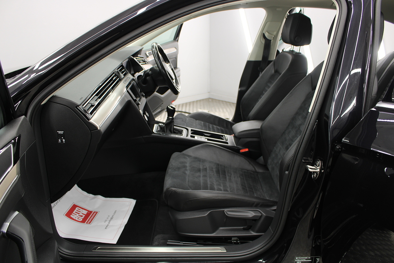 There specifications include, panoramic sun roof, dual zone air conditioning, black leather and alcantara trim with heated front seats, front and rear electric windows, DAB radio with MP3 functionality and full colour satellite navigation, heated and electric external mirrors, rain sensors, tinted windows and ISOFIX child anchorage points. Elegant styling disguises even greater carrying capacity than before, while the quality feel of the interior has been improved substantially with top grade materials and soft touch plastics. The cars ride and refinement deserve special mention and the Passat is now arguably as comfortable than German rivals from BMW, Audi and Mercedes-Benz.