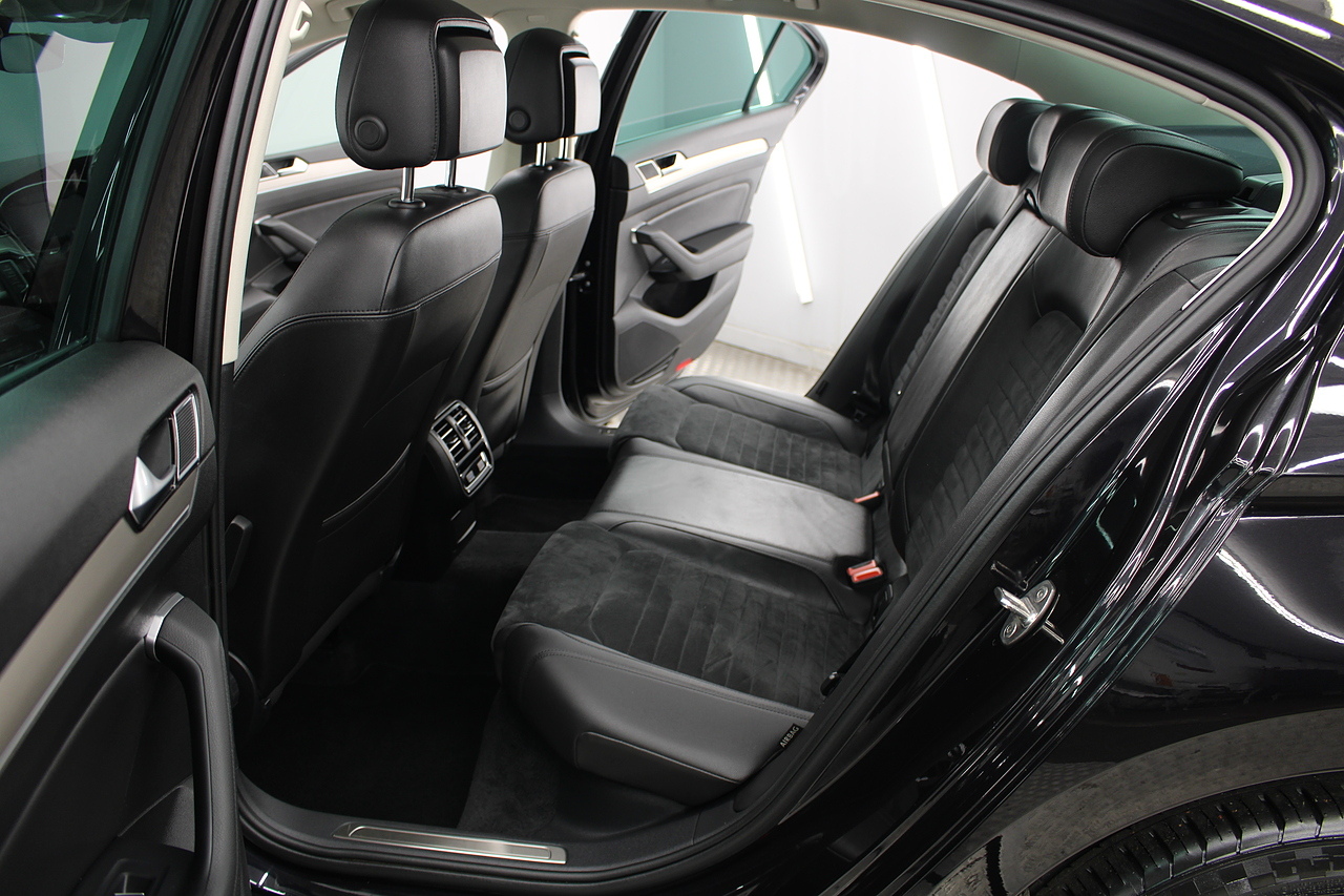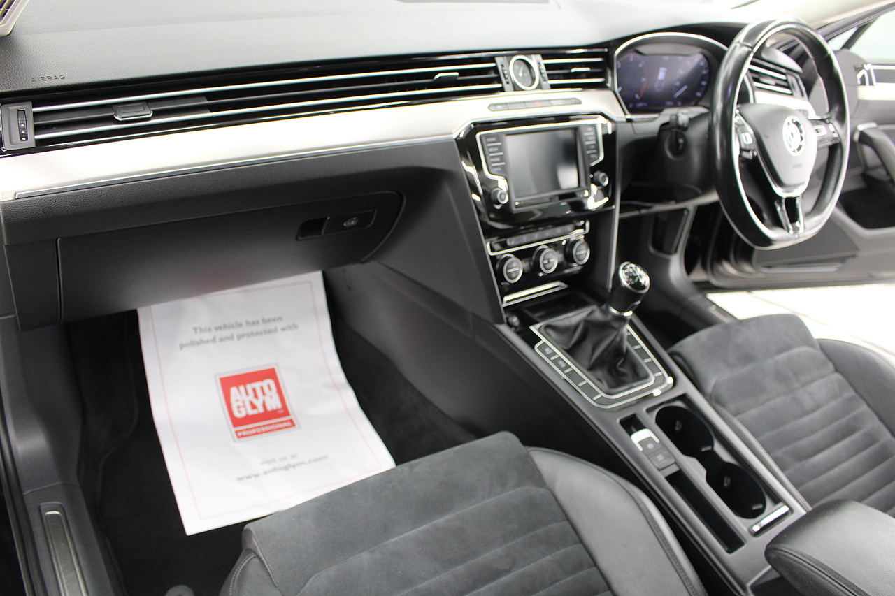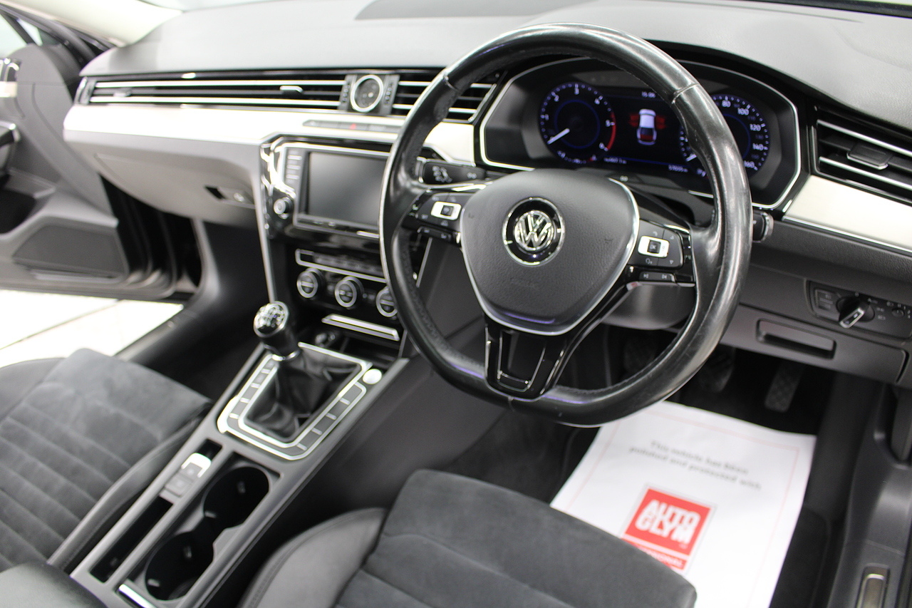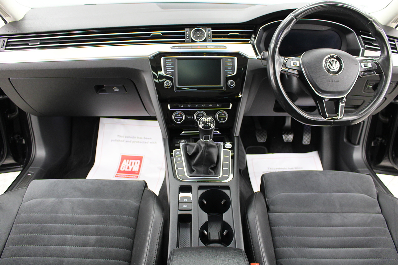 There specifications include, panoramic sun roof, dual zone air conditioning, black leather and alcantara trim with heated front seats, front and rear electric windows, DAB radio with MP3 functionality and full colour satellite navigation, heated and electric external mirrors, rain sensors, tinted windows and ISOFIX child anchorage points. Elegant styling disguises even greater carrying capacity than before, while the quality feel of the interior has been improved substantially with top grade materials and soft touch plastics. The cars ride and refinement deserve special mention and the Passat is now arguably as comfortable than German rivals from BMW, Audi and Mercedes-Benz.