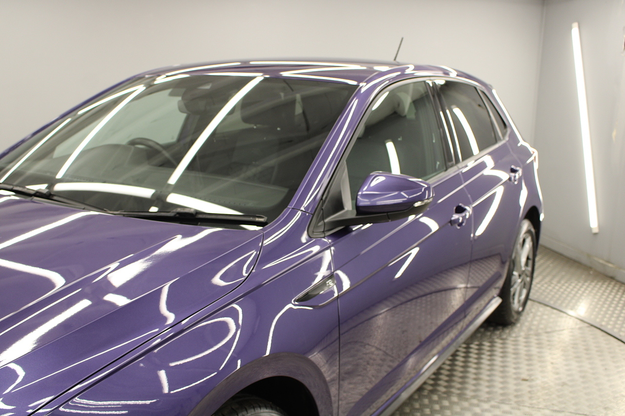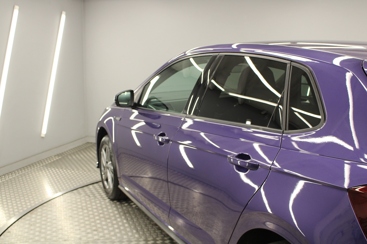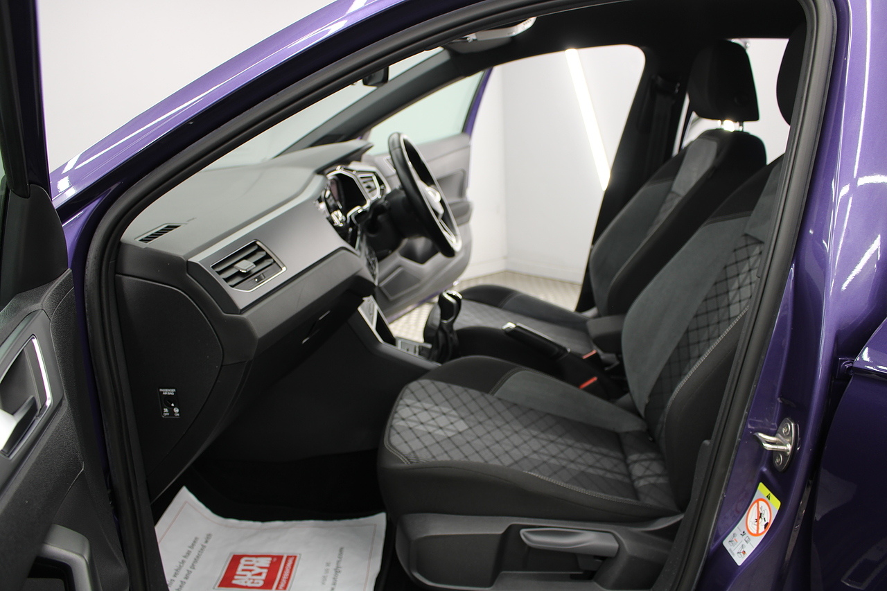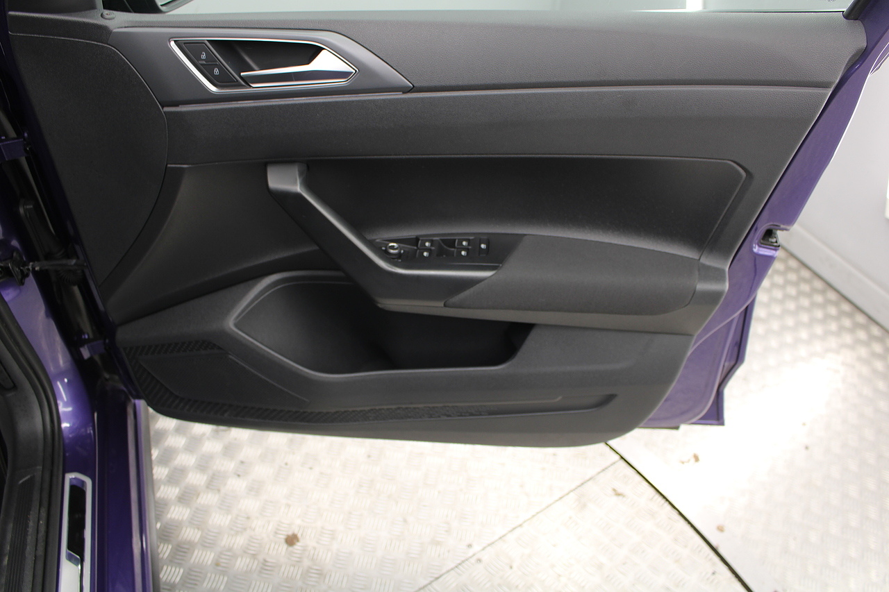 Finished in vibrant violet metallic, with modern styling and 5 spoke alloy wheels. The specifications of this car do include air conditioning, cruise control, electric windows, Bluetooth telephone connectivity, Bluetooth media player, DAB radio with MP3 functionality, Apple Car Play and Android Auto, electric door mirrors, ISOFIX anchorage point, cup holder and additional storage throughout. This Volkswagen Polo is arguably the most upmarket small car that you can buy. It is refined, stylish and depending on which engine you choose can be incredibly frugal or delightfully quick. Much of the look and layout inside echoes that of the VW Golf a high quality car itself. It works so well that many buyers should consider whether they need the extra space of a Golf when this 3/4 scale replica does a very similar job just as well.