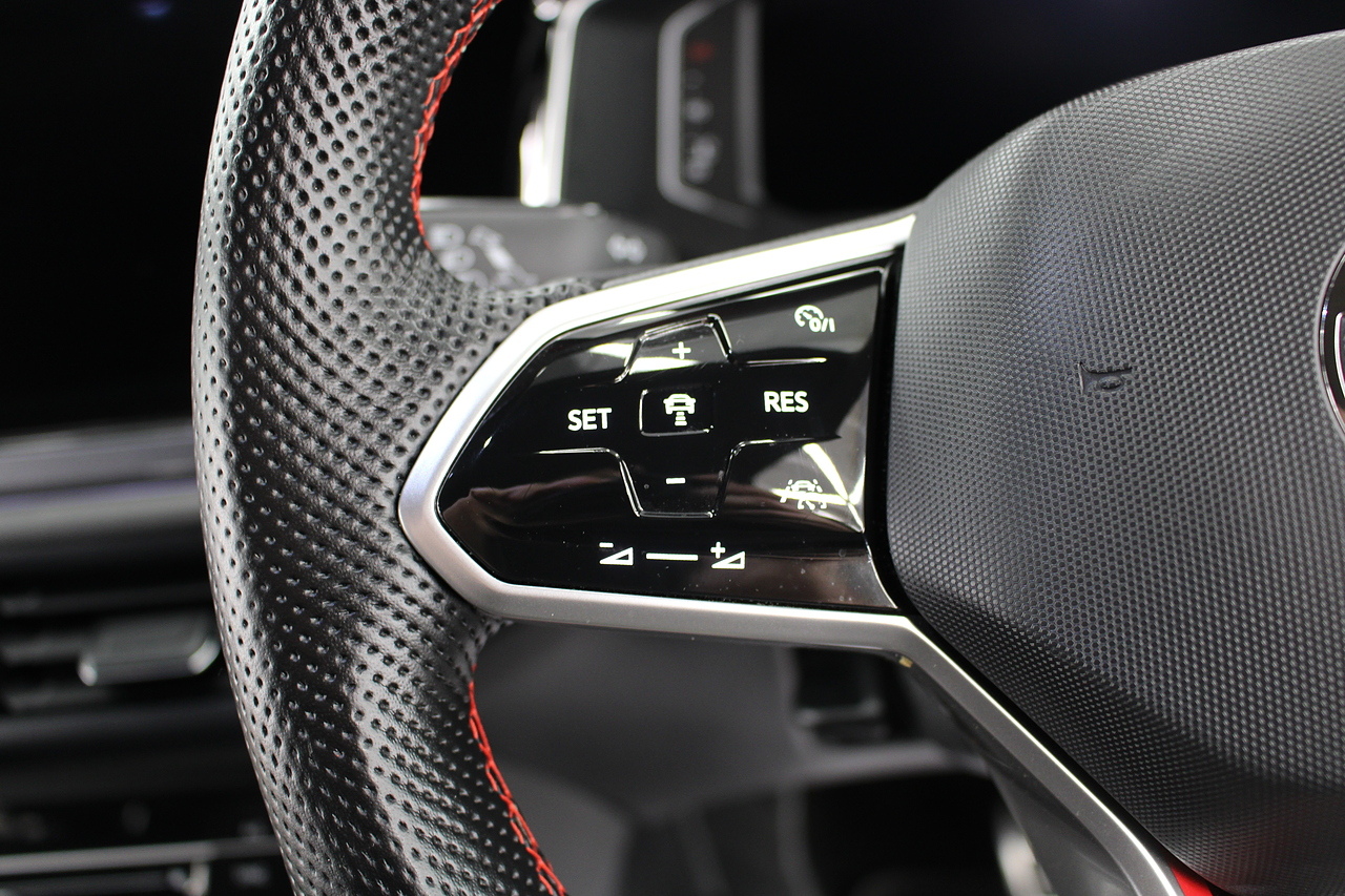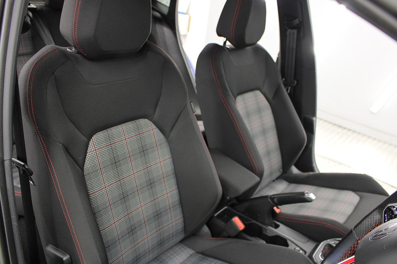 This is one of those very rare occasions when cloth is more desirable than leather, and you will be very pleased to know that this car has the Jacara cloth trim. Paying homage to the original Golf GTI of the 80s this is really the only interior to have on one of these beautiful cars, in addition you get, a large full colour touch screen, Satellite navigation, Bluetooth connectivity, apple car play and android auto, DAB radio, virtual cockpit display, air conditioning and climate control, steering wheel mounted controls, as well as ISOFIX child anchorage seat points.