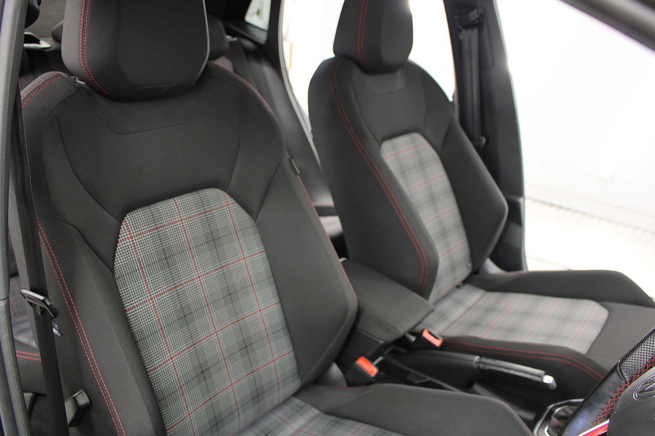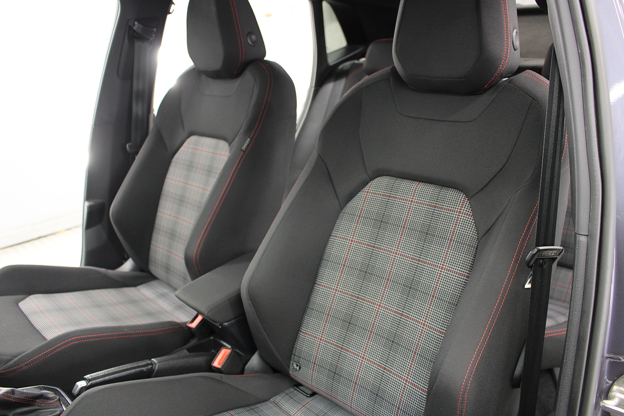 This is one of those very rare occasions when cloth is more desirable than leather, and you will be very pleased to know that this car has the Jacara cloth trim. Paying homage to the original Golf GTI of the 80s this is really the only interior to have on one of these beautiful cars, in addition you get, a large full colour touch screen, Satellite navigation, Bluetooth connectivity, apple car play and android auto, DAB radio, virtual cockpit display, air conditioning and climate control, steering wheel mounted controls, as well as ISOFIX child anchorage seat points.