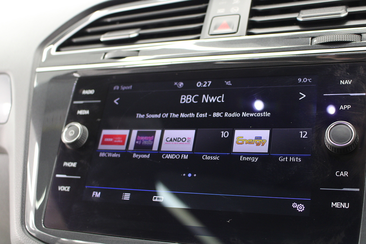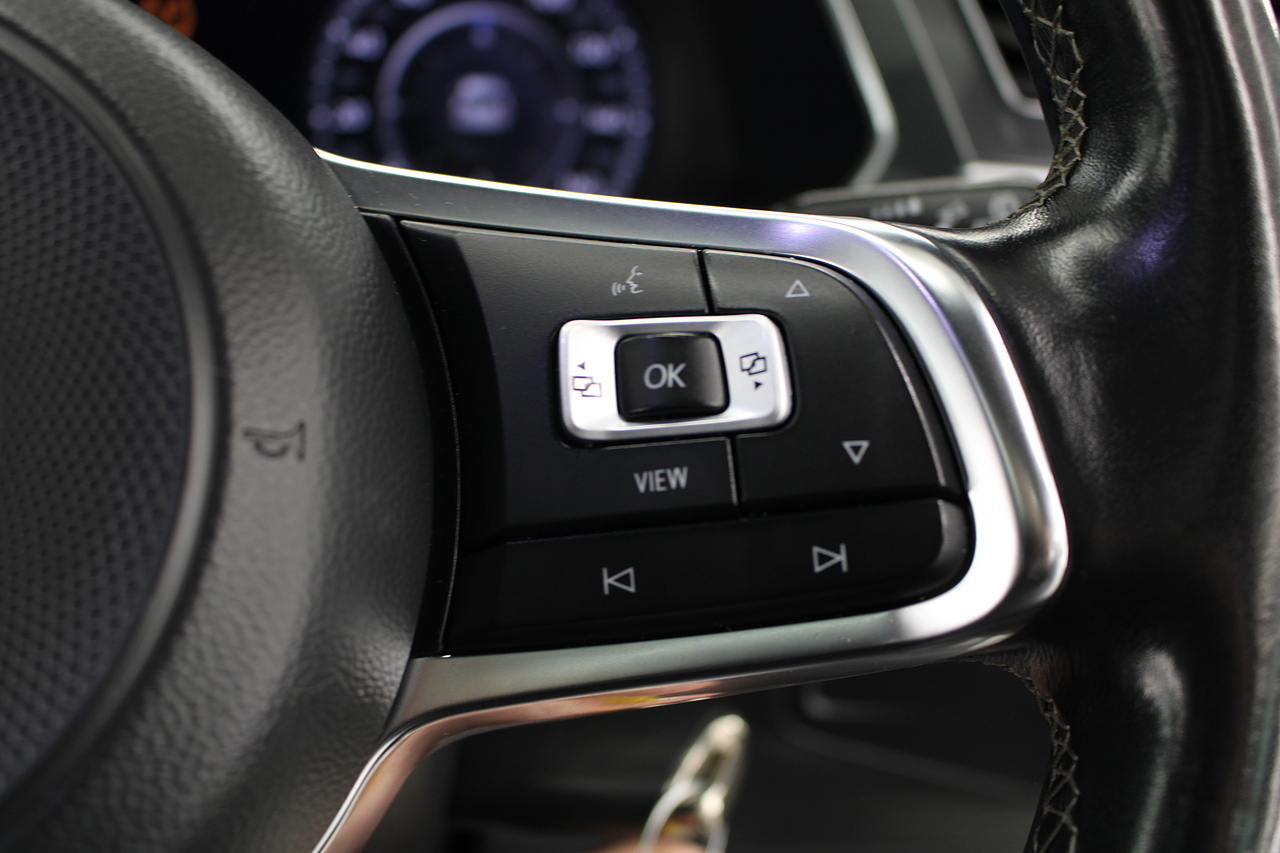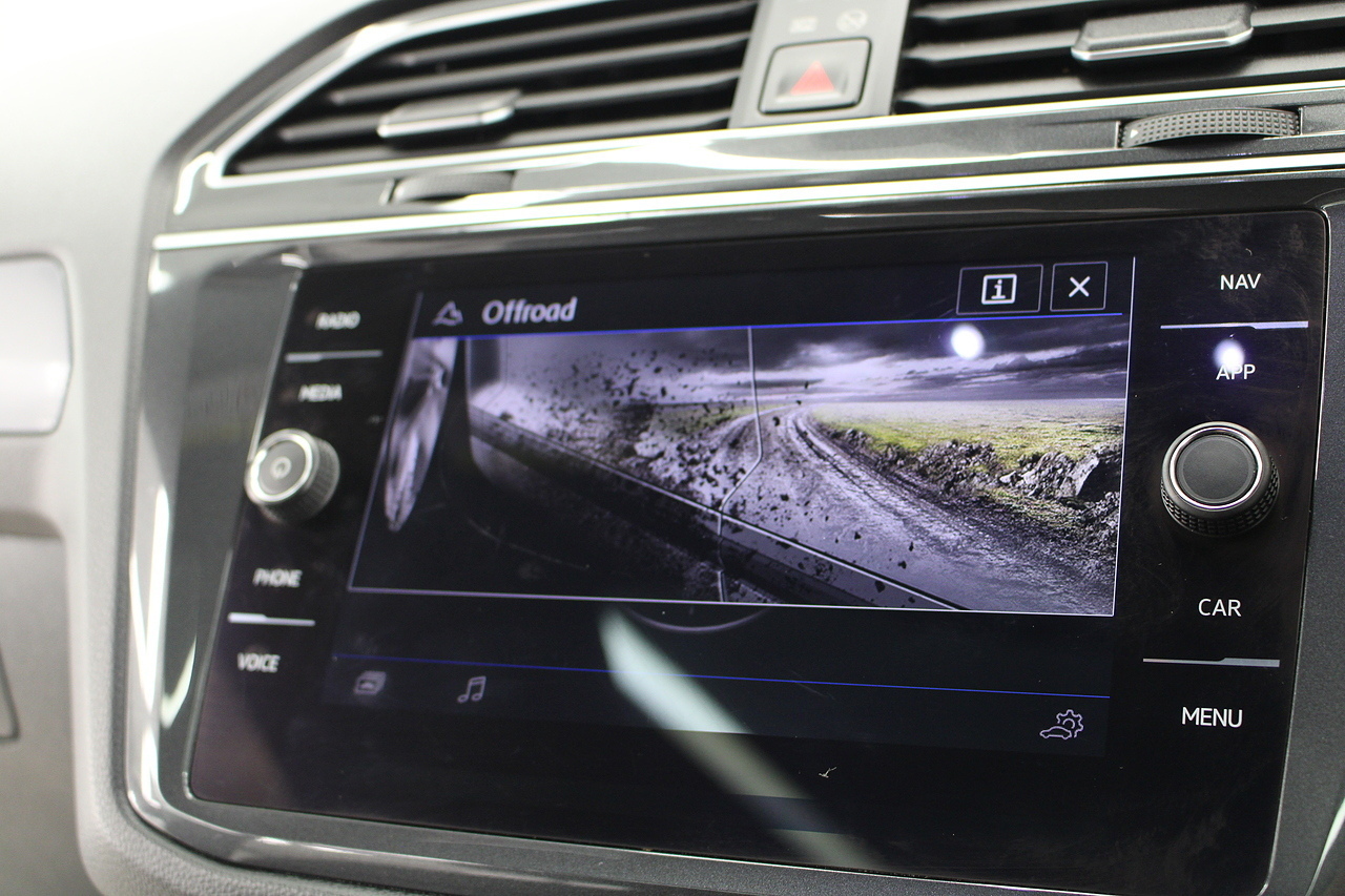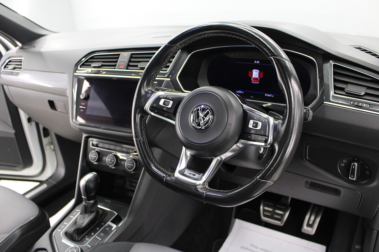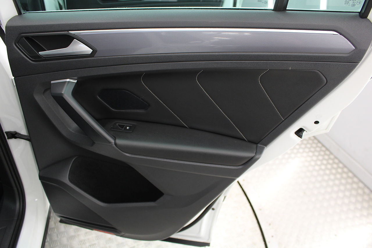 This Tiguan's interior comes trimmed in sporty R-line dark cloth with heated seats, dual zone climate control, cruise control, premium sound system, DAB radio and satellite navigation, Apple car play, Android auto, Bluetooth connectivity, steering wheel mounted controls, headlight and rain sensors, rear and forward parking aid, 12v power adapter and ISOFIX anchorage points, air conditioning, Bluetooth telephone connectivity, full panoramic sunroof as well as ISOFIX anchorage points.