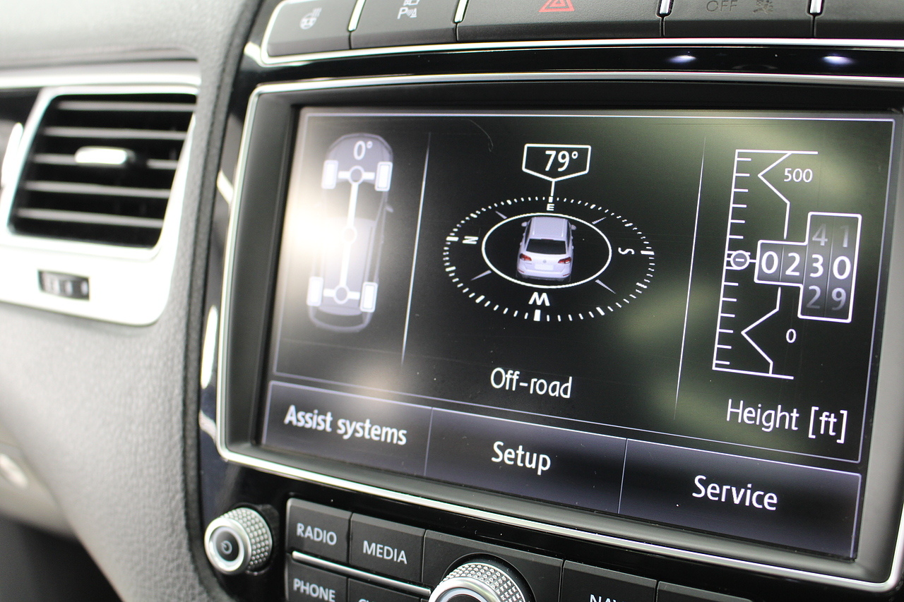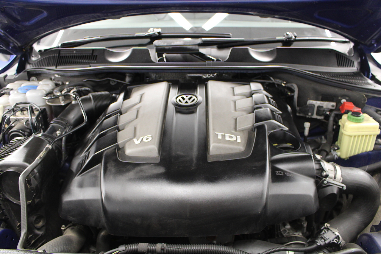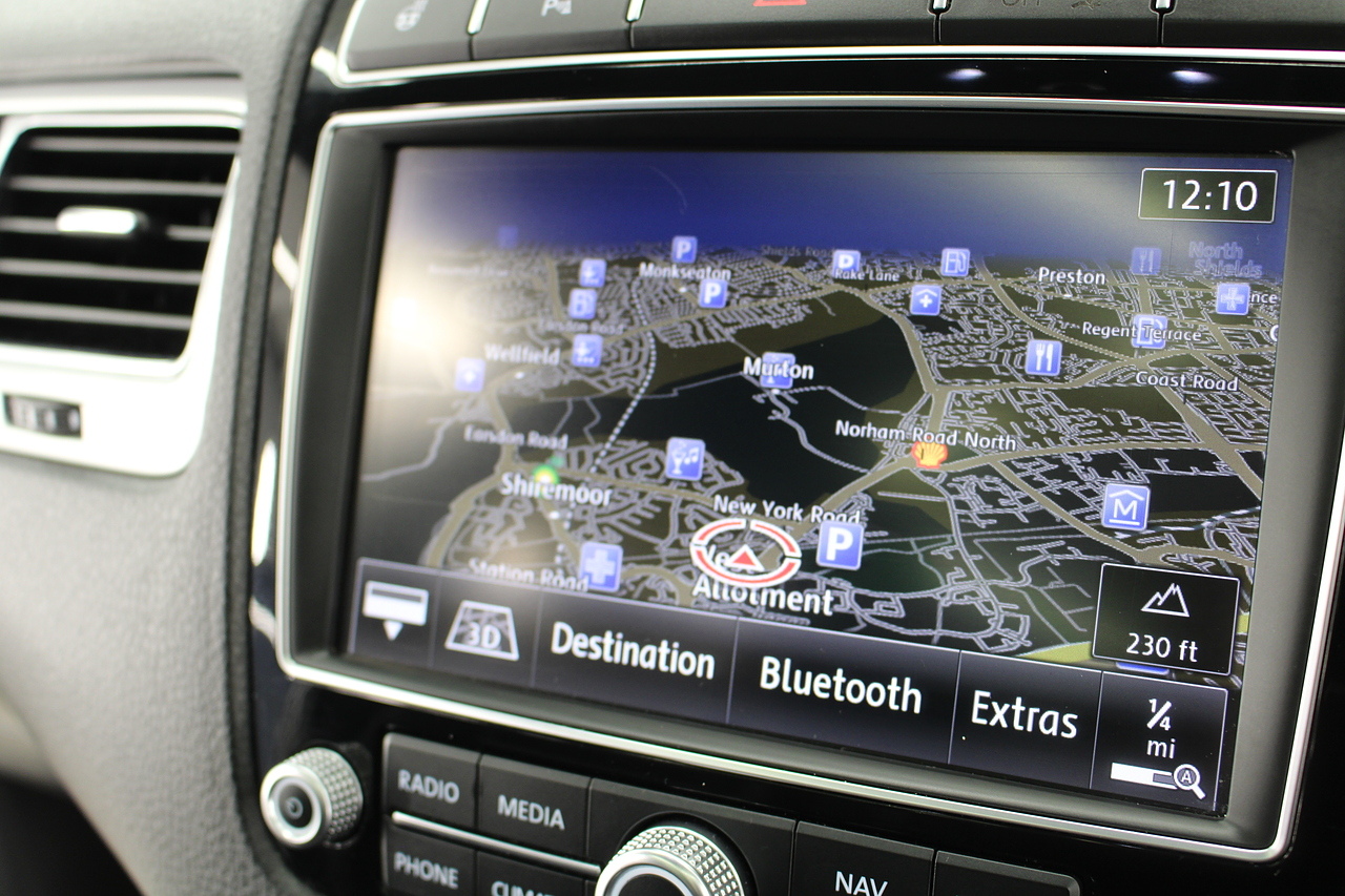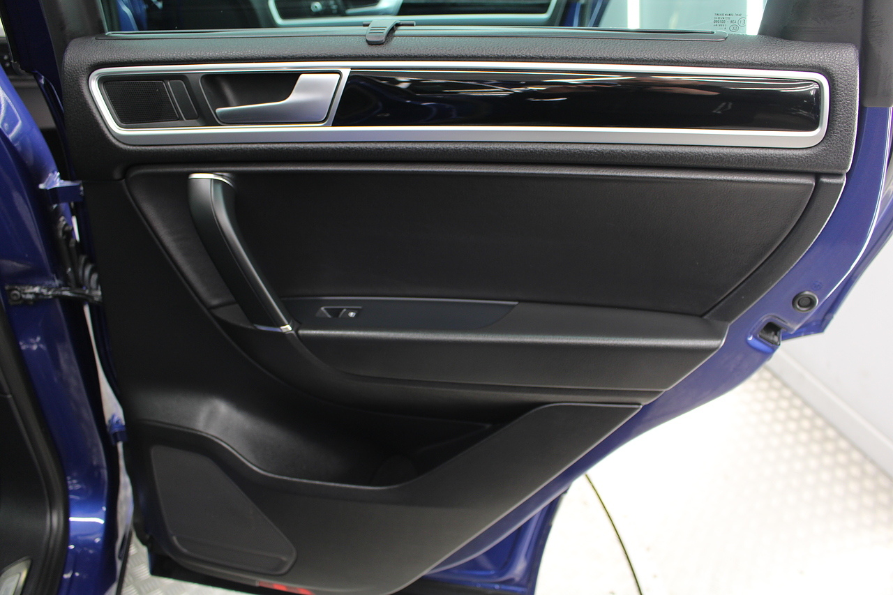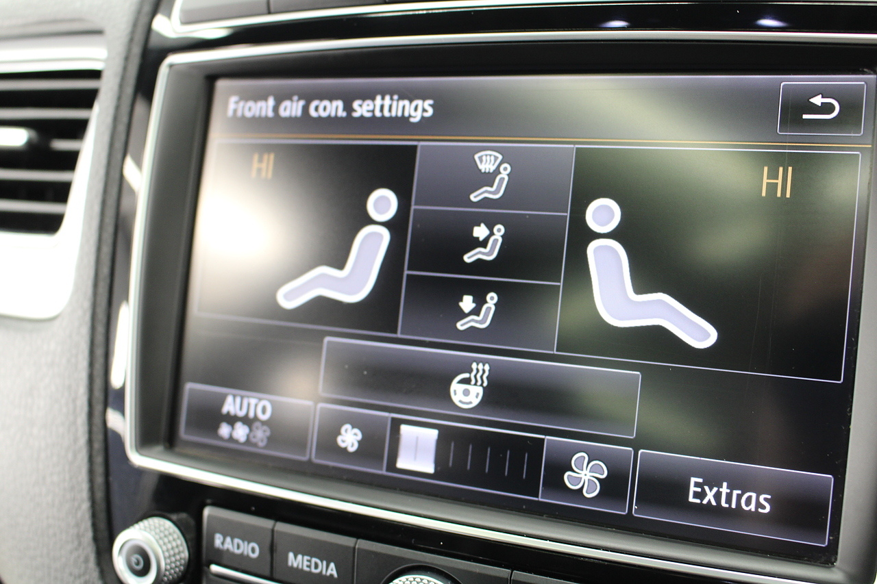 To the inside we have the full black leather interior with heated front seats, heated steering wheel, panoramic sunroof, satellite navigation, Bluetooth connectivity, front and rear parking sensors with rear camera, power operated tailgate, CD DAB radio with full colour touch screen and dark tinted rear windows. It should come as no surprise the Volkswagen Touareg is good to drive when you consider how closely related it is to the Porsche Cayenne.