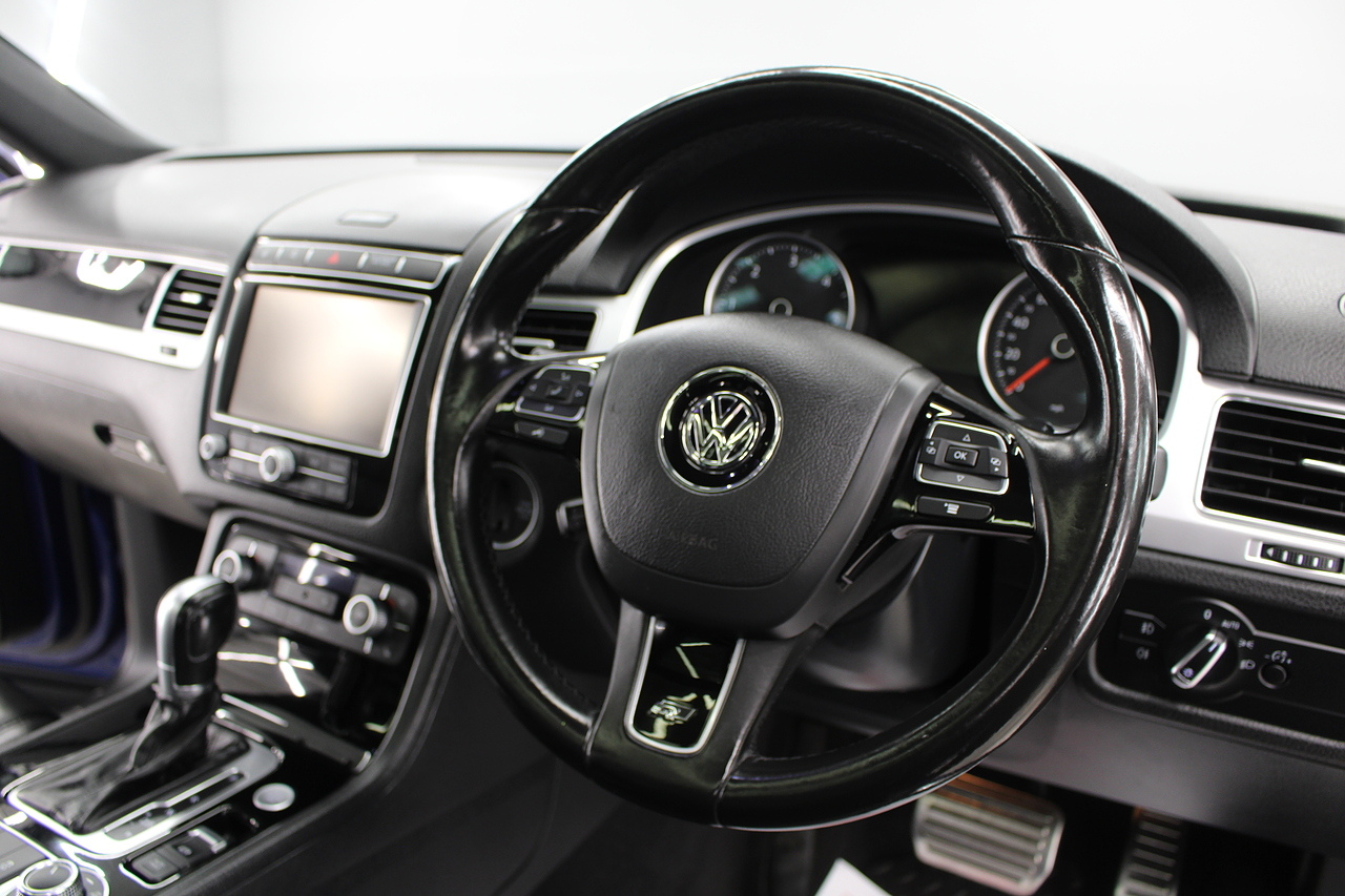 This is our stunning 2016 Volkswagen Touareg R-Line Plus. Powered by the 3.0 V6 TDI engine with an impressive 258 BHP to the 4 wheel drive system.