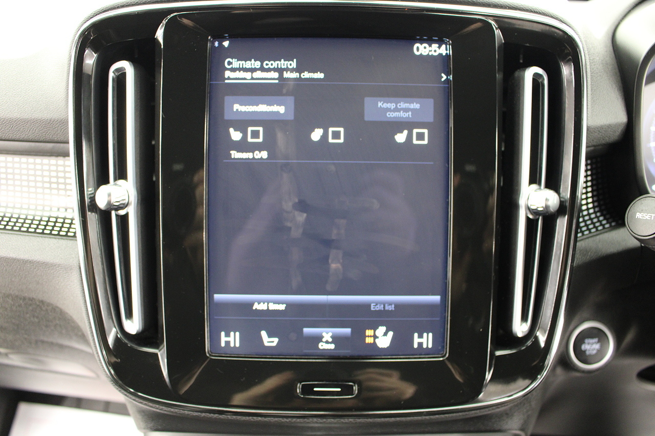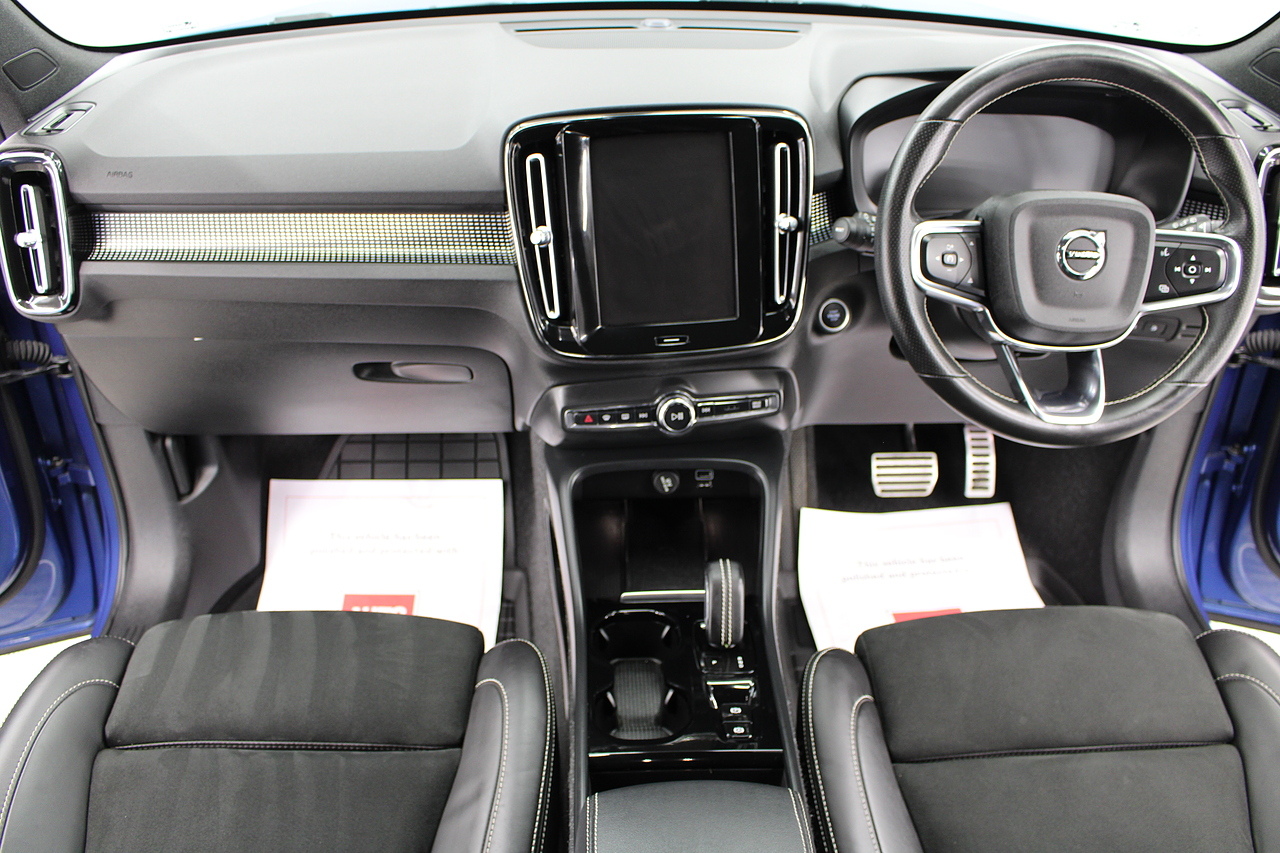 This XC40 comes with a fantastic specification, including the Driver Assist pack, Climate pack, Versitility pack, Intelisafe Surround, premium sound sytem, apple car play and android auto, as well as the vast amount of features the XC40 comes with as standard.