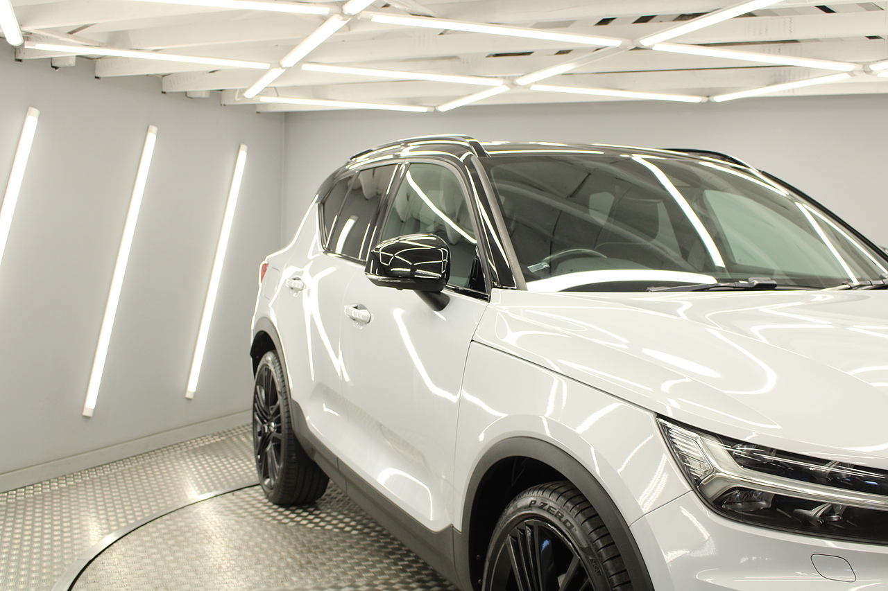 Finished in the beautiful glacier silver metallic with gloss black 21'' alloy wheels and the black pack as well as the panoramic sunroof and privacy glass. All make this XC40 a great looking SUV.