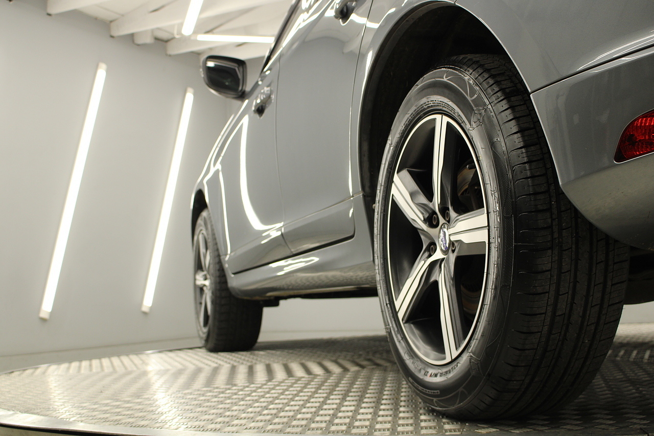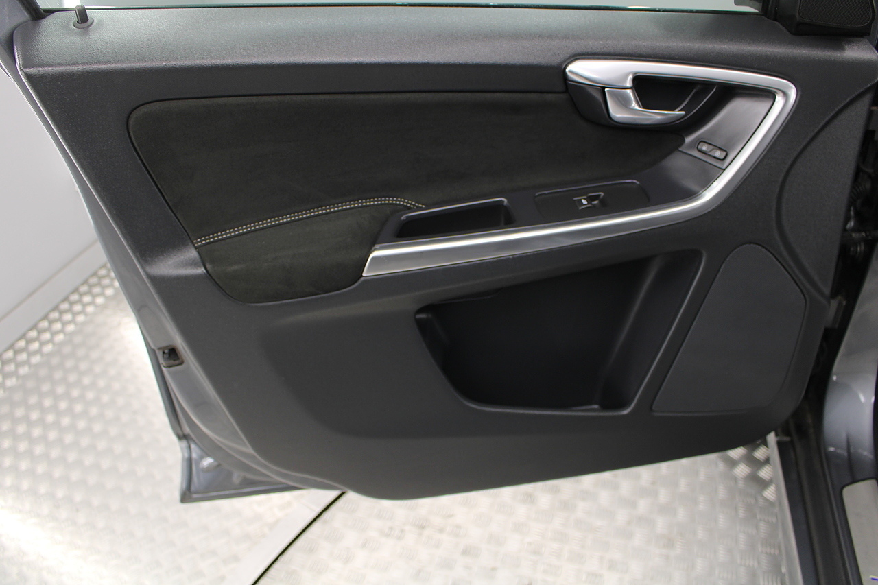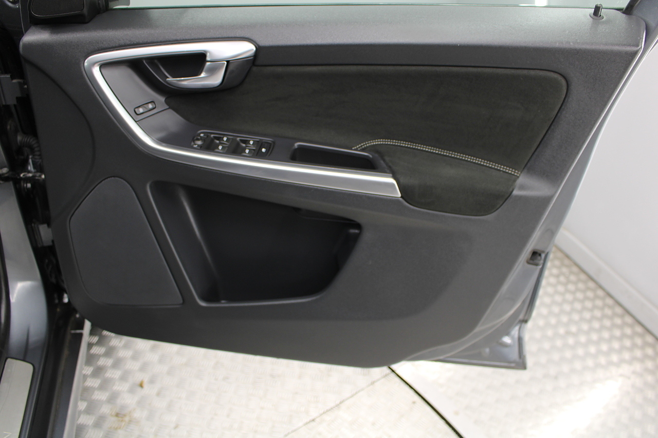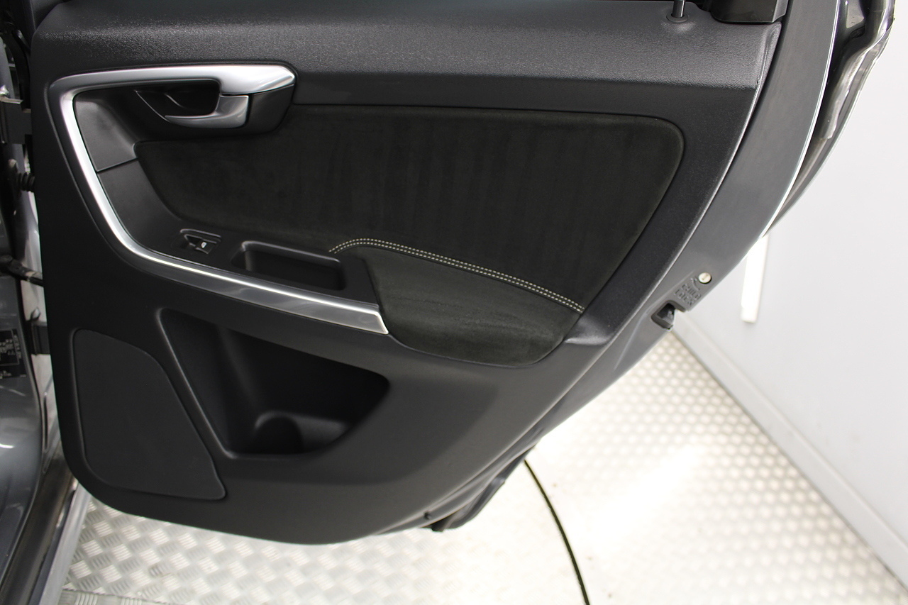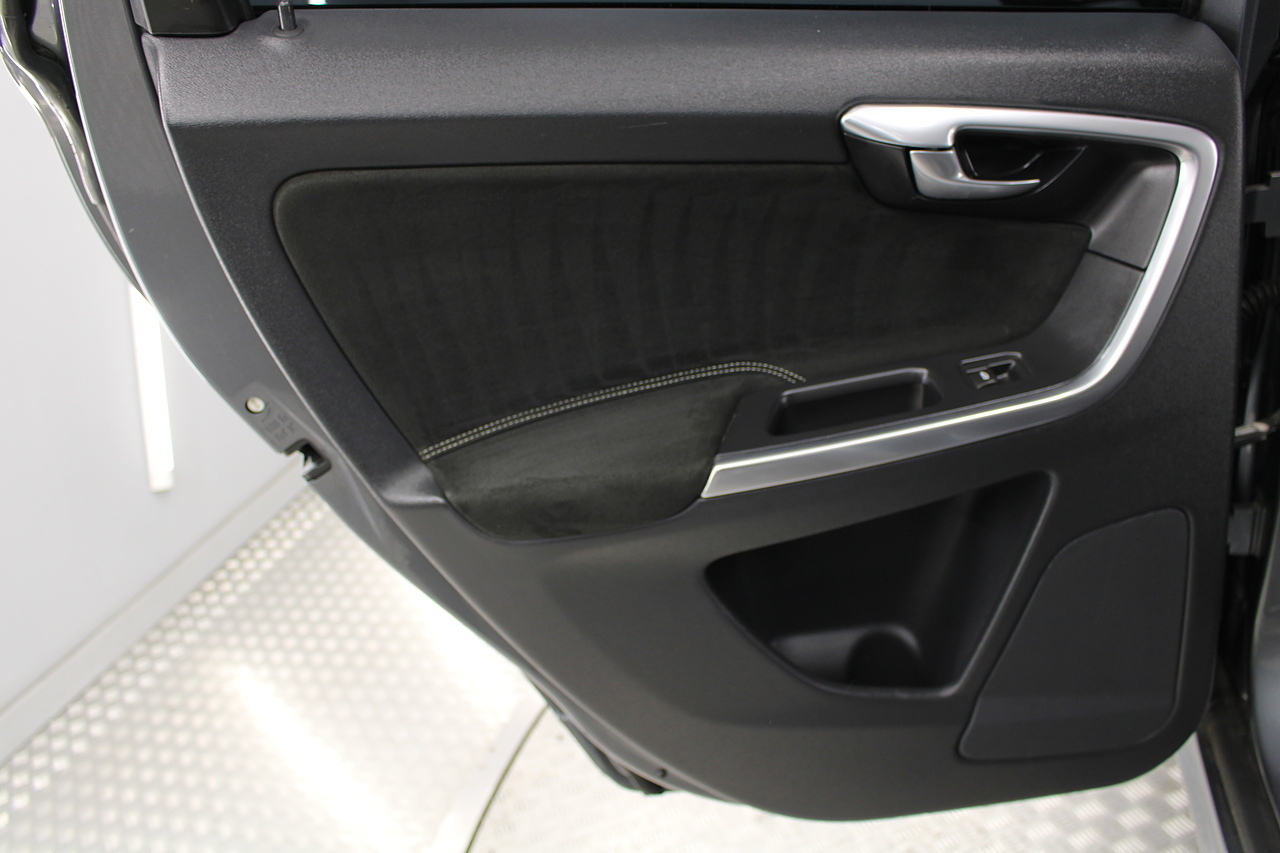 The interior is trimmed in high quality black leather /alcantara with heated front seats. Also comes with cruise control, satellite navigation, DAB radio and isofix fittings on the seats, plus handy drivers aids such as parking sensors, cruise control and the power operated tailgate, In summary, a very desirable and great looking practical safe car. Decent running costs, matched with Volvos reputation for exceptional build and reliability.